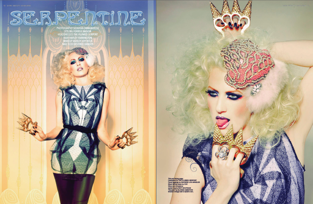 Plumed Serpent has been featured on Lizzo (Rolling Stone Magazine), Nikki Minaj (Hard White video), in fashion magazines, art books, and more. For press inquiries please contact info@theplumedserpent.net.